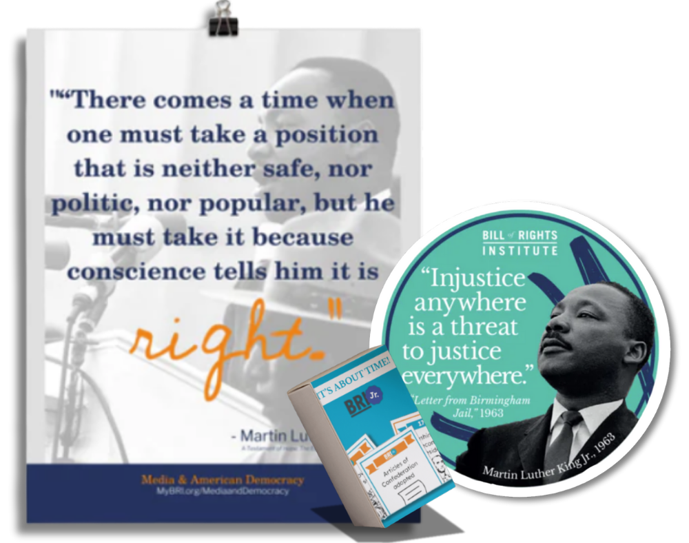 Celebrate Martin Luther King Jr. with this BRI Jr. Bundle which features a 3"x3" sticker and a 8"x10" poster combo with quotes from Martin Luther King Jr.